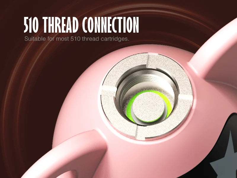 The Bear features a 510 thread and works with most oil or extract cartridges, and the Lookah 510 wax carts, so it is a versatile option for vapers of all levels.